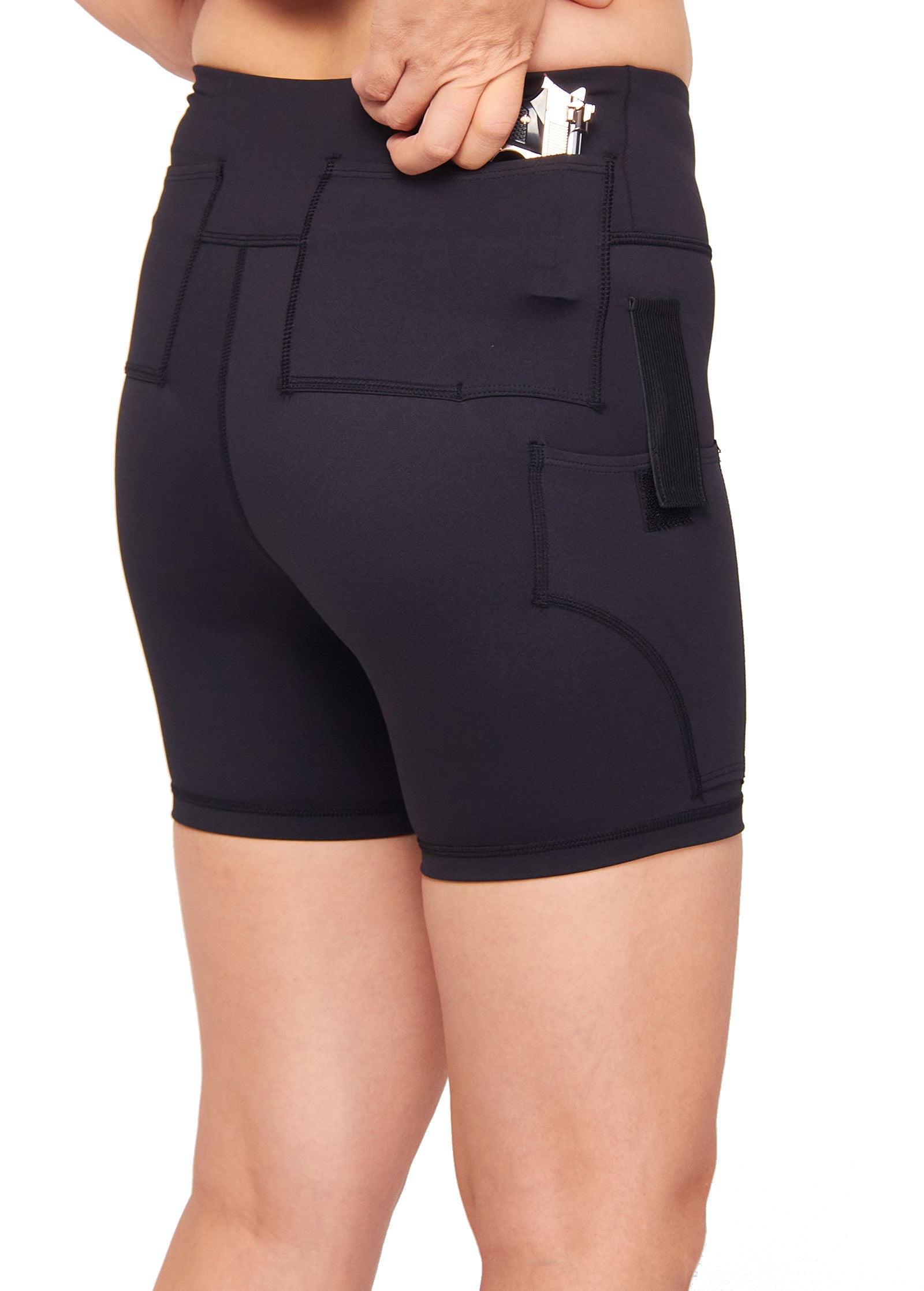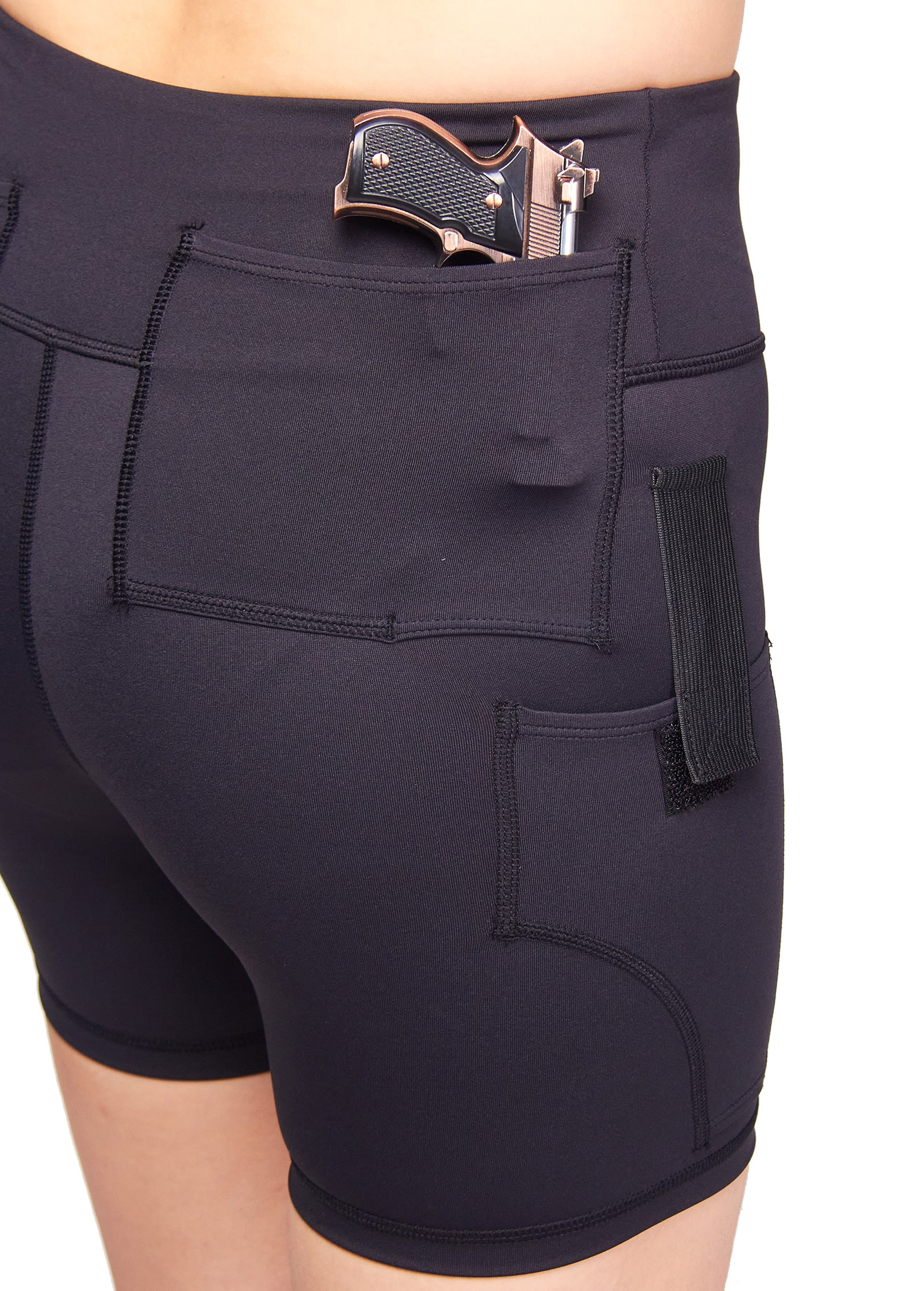Graystone CCW Women's Two Pocket Holster Short with Outer Thigh Pocket Concealed Carry Compression Clothing Spandex